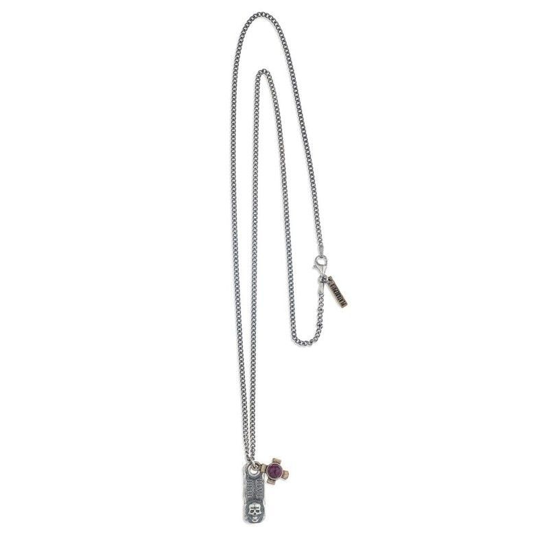 Colgante Skull SN011X en acero inoxidable con acabado plateado, ideal para adultos que buscan un toque urbano y sofisticado. Diseño de calavera con detalle de piedra morada, cadena fina y ajustable. Perfecto como accesorio versátil para looks casuales o formales. Joyería de calidad que combina estilo y durabilidad.