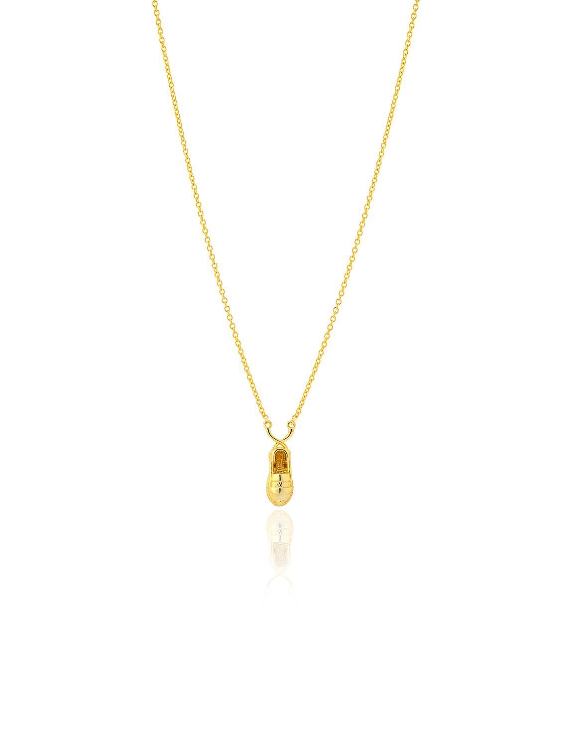 Colgante en forma de zapato de 13mm, acabado en plata dorada, ideal para amantes de la joyería minimalista y con estilo. Fabricado en metal de alta calidad, con detalles grabados que aportan elegancia. Perfecto como regalo o para lucir en cualquier ocasión. Cadena fina y delicada, ideal para combinar con otros collares.