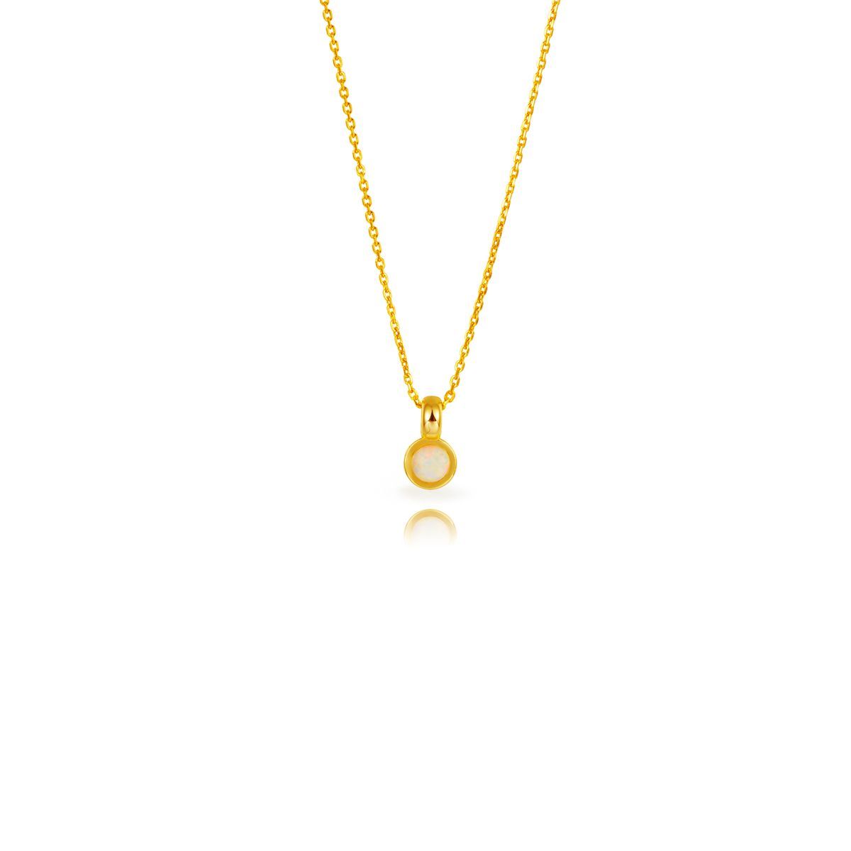 Colgante de plata dorada con ópalo blanco de 6mm, ideal para mujeres que buscan joyería fina y elegante. Diseño minimalista con cadena de eslabones dorados, perfecto para usar diariamente o como regalo especial. Materiales de calidad que resaltan la belleza natural del ópalo.