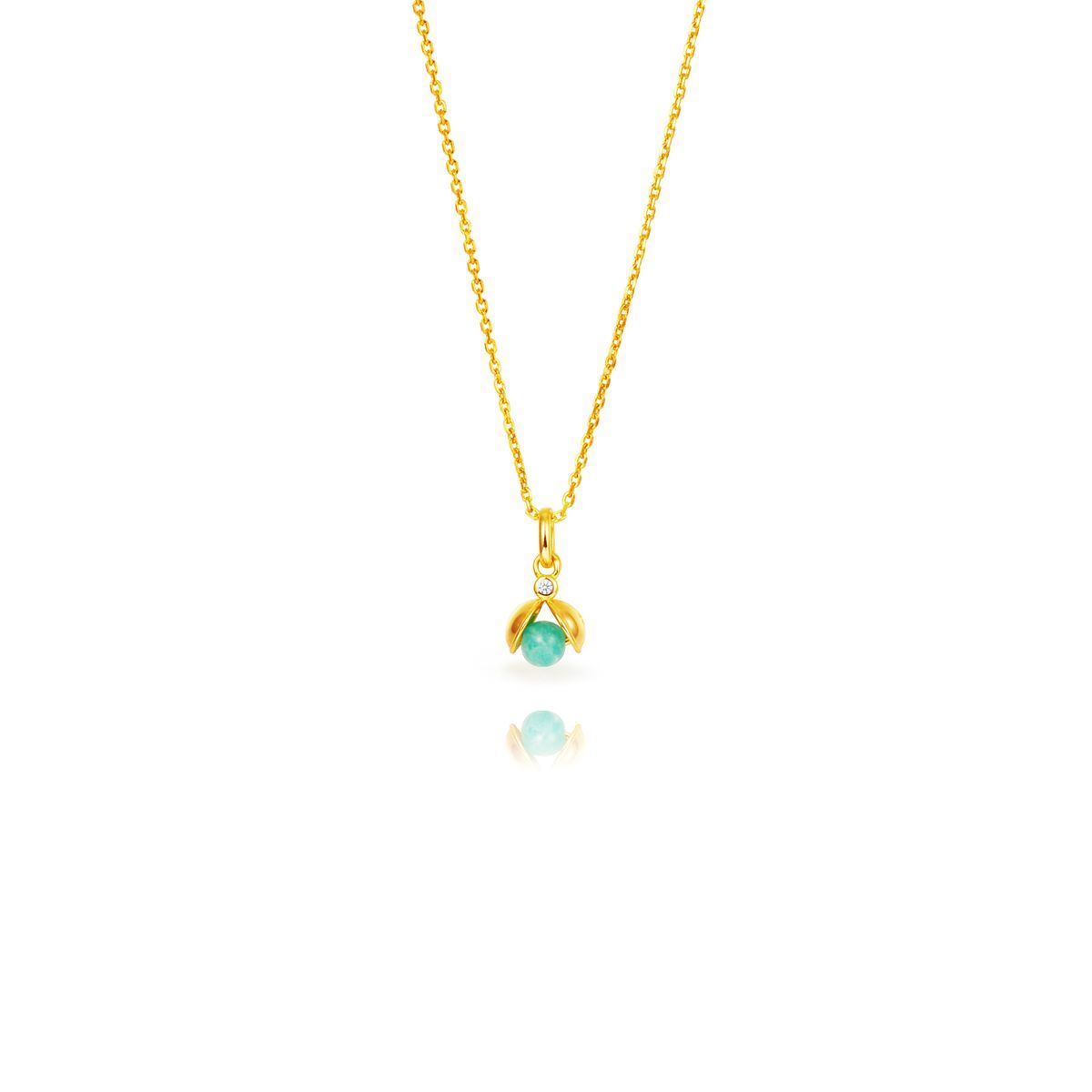 Colgante Mariquita en plata dorada con piedra de amazonita verde de 7mm. Diseño delicado y elegante, ideal para mujeres que buscan joyas con toque natural y simbólico. Cadena fina y ajustable, perfecta para usar diariamente o como regalo especial. Calidad duradera y acabado brillante.