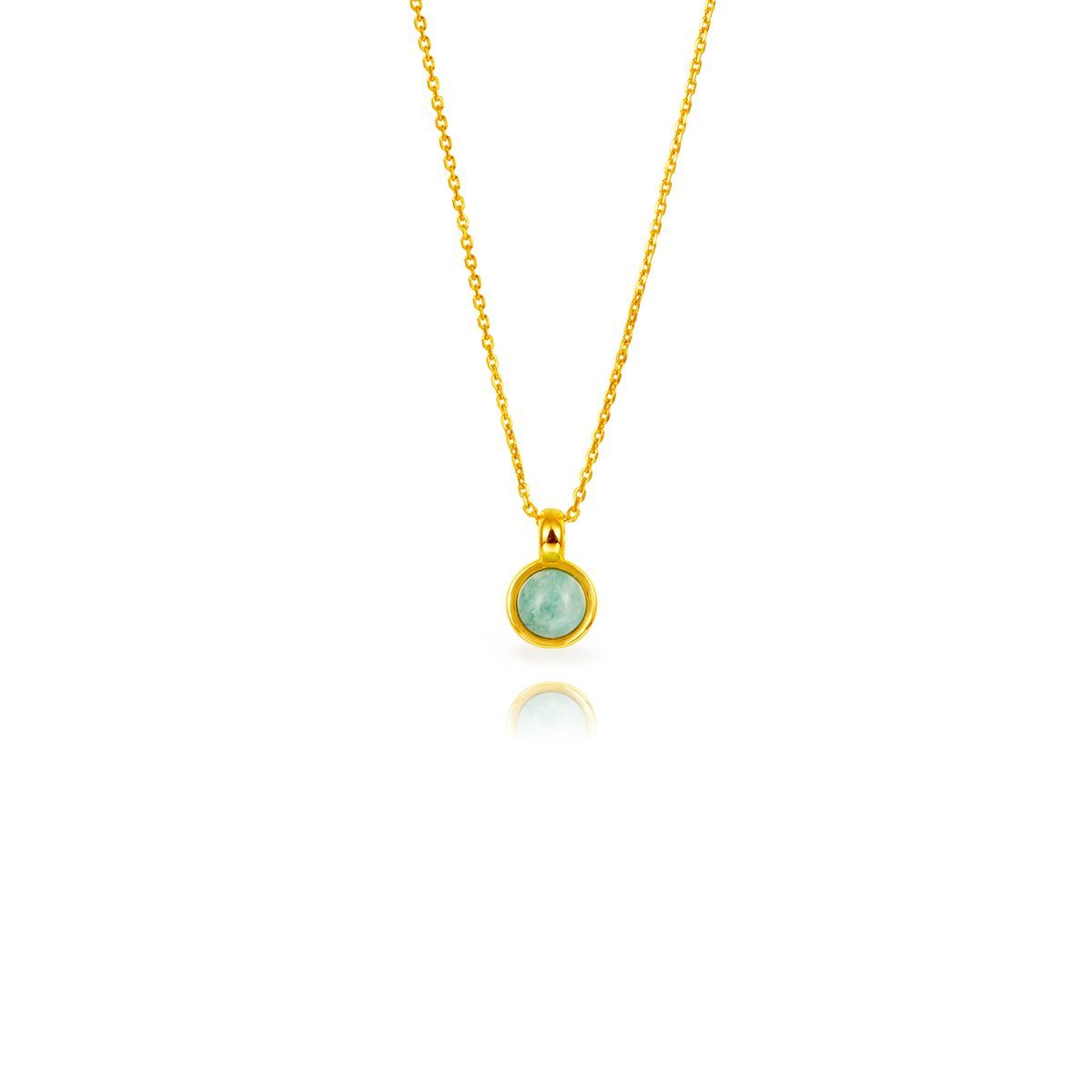 Colgante de plata dorada con piedra de amazonita de 8mm, ideal para quienes buscan joyería fina y con significado. Diseño minimalista y elegante, perfecto para usar diariamente o como regalo especial. Fabricado con metal dorado y piedra natural de tono verde claro, este colgante aporta un toque sofisticado a cualquier look. Ideal para mujeres que a