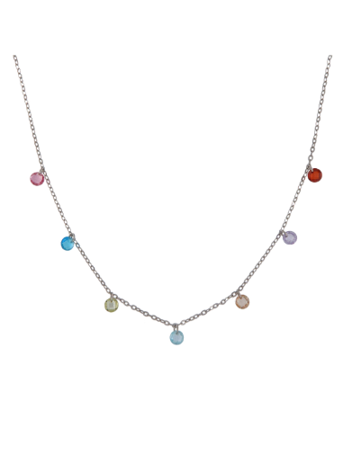 Collar de plata con circonitas multicolor para mujer, diseño elegante y delicado con piedras en tonos rosa, azul, verde, naranja, morado y amarillo. Ideal para complementar cualquier look con un toque sofisticado y femenino. Perfecto para ocasiones especiales o uso diario.