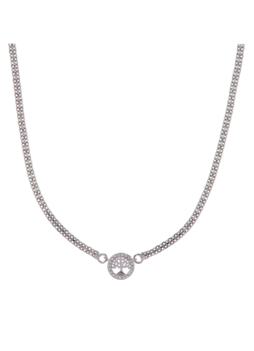 Elegante colgante de plata para mujer con diseño de árbol de la vida, adornado con circonitas que brillan con luz. Cadena fina y ajustable, ideal para looks diarios o especiales. Joya de calidad que combina simbolismo y estilo. Perfecta para regalar o lucir con cualquier atuendo.