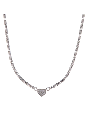 Colgante de plata para mujer con diseño de corazón y circonitas, ideal para complementar cualquier look. Cadena fina y elegante, perfecta para uso diario o ocasiones especiales. Un accesorio sofisticado y versátil que aporta un toque de elegancia a tu joyería.