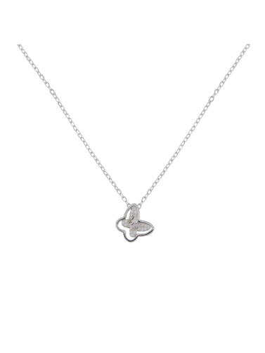 Colgante de plata para mujer en forma de mariposa con circonitas incrustadas, ideal para looks elegantes y diarios. Cadena fina y diseño delicado que resalta la belleza femenina. Perfecto como regalo o complemento para cualquier ocasión.