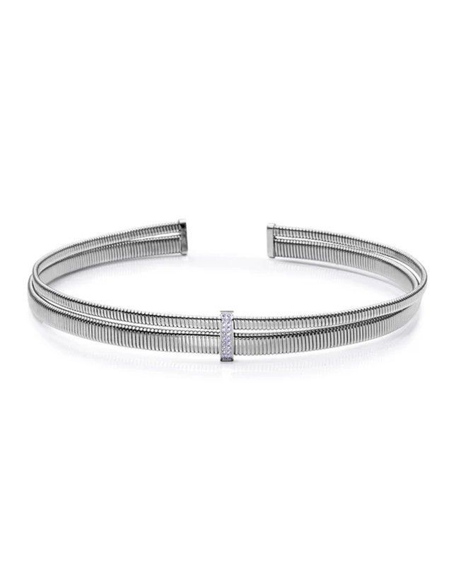 Collar Doble Viceroy de Laura Escanes en acero inoxidable plateado, con elegante textura ribeteada y detalle central con diamantes. Diseño sofisticado y moderno, ideal para mujeres que buscan joyería de alta calidad. Perfecto para looks formales o como complemento elegante en cualquier ocasión.