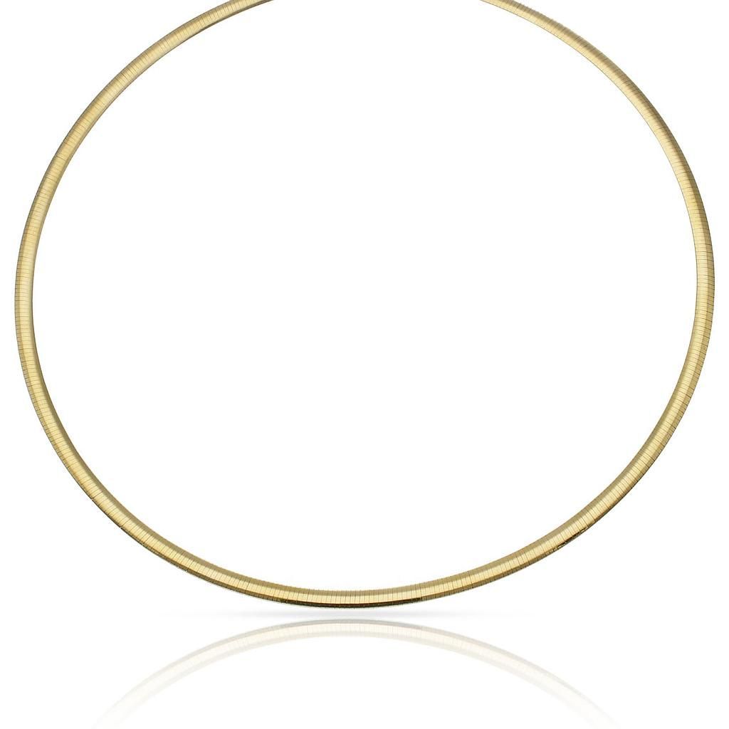 Collar macizo semirrígido de mujer en oro de 18 kilates, diseño minimalista y elegante. Ideal para looks sofisticados, su acabado pulido y brillo intenso lo convierten en un accesorio atemporal. Perfecto para ocasiones especiales o como pieza de joyería diaria. Calidad superior, fabricado en oro puro para una durabilidad excepcional.