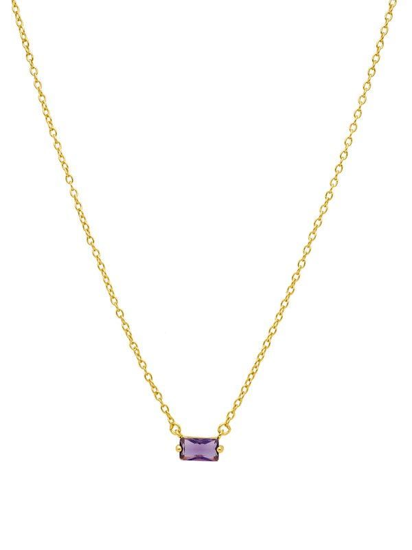 Collar Marea Mujer en oro de 18 quilates con circonita lila, diseño rectangular y minimalista. Ideal para mujeres que buscan elegancia y sofisticación. Cadena fina y pendiente delicado, perfecto para usar diariamente o en ocasiones especiales. Joyería de alta calidad para realzar tu estilo.
