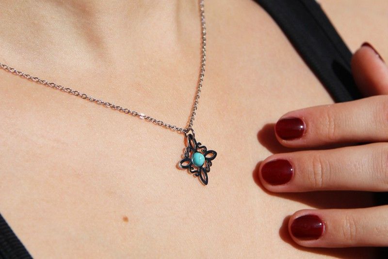 Collar Nudo de Bruja con turquesa, ideal para mujeres que buscan joyas con significado. Fabricado en metal con piedra turquesa en el centro, este collar simboliza protección y equilibrio. Cadena fina y diseño elegante para llevar diariamente o en ocasiones especiales. Perfecto como regalo o para complementar tu estilo bohemio o místico.