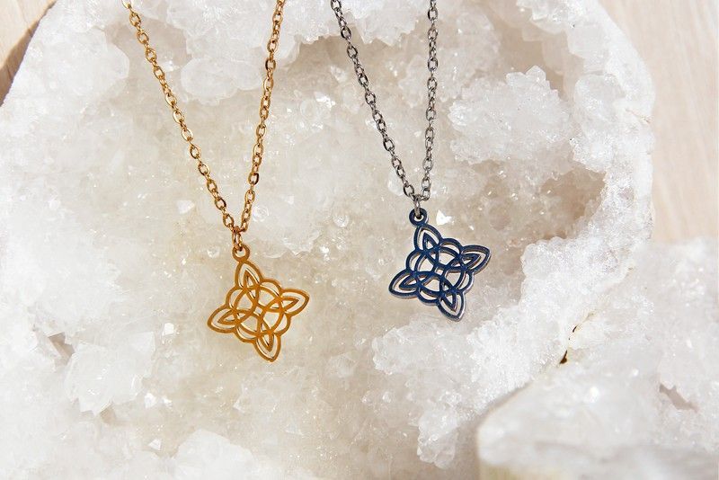 Collar Nudo de Bruja en oro y negro, diseño elegante y único para adultos.