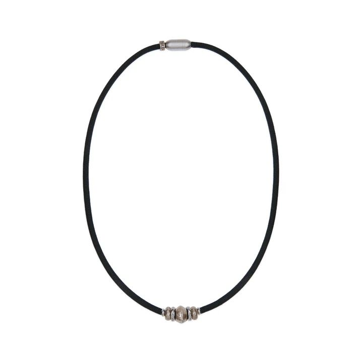 Collar-pulsera doble de nylon negro con detalles metálicos plateados, ideal para adultos que buscan versatilidad y estilo. Fabricado con cuerda de nylon resistente y acabados en metal brillante, se puede usar como collar o pulsera según tu look. Diseño minimalista y moderno, perfecto para combinar con cualquier atuendo casual o semi-formal. Ideal p
