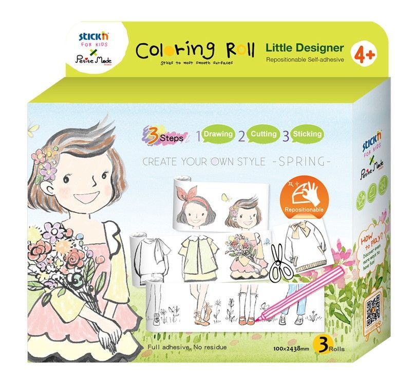 Coloring Roll Estaciones: Primavera, un juego creativo para niños a partir de 4 años. Incluye 3 rollos de papel adhesivo reutilizable para crear tu propio estilo con ropa y accesorios. Ideal para desarrollar la creatividad y habilidades manuales. Fácil de usar: dibuja, corta y pega. Perfecto para actividades en casa o en clase.