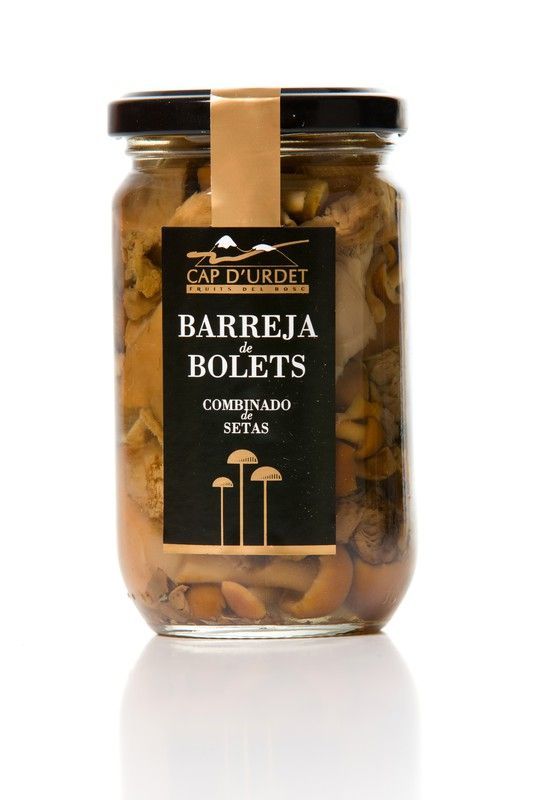 Combinado de setas silvestres en conserva de 300 grs de la marca Cap d'Urdet, ideal para cocinar platos gourmet con sabor auténtico de montaña. Presentado en frasco de vidrio con etiqueta elegante y cinta dorada. Perfecto para añadir a arroces, pastas o como acompañamiento gourmet. Conserva el aroma y textura de las setas frescas.