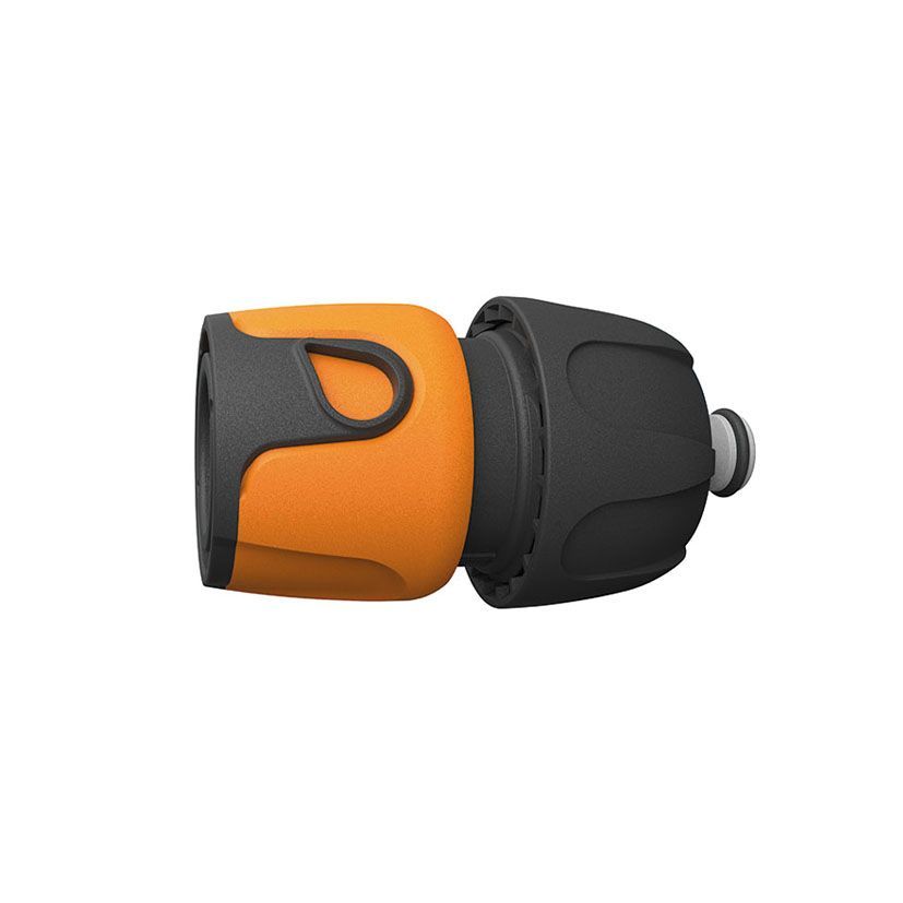Conector rápido para manguera de jardín con diámetro de 19 mm, fabricado en plástico resistente y acabado en naranja y negro. Diseño ergonómico con asa integrada para un manejo fácil y seguro. Ideal para sistemas de riego y jardinería, permite conexiones rápidas y seguras sin fugas. Perfecto para jardineros y usuarios que buscan eficiencia y durabi
