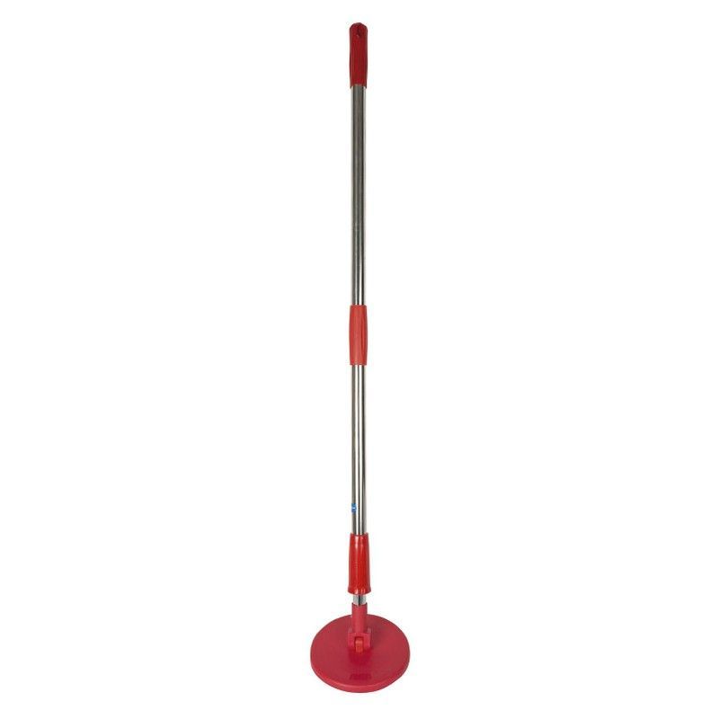 Conjunto de fregar DUETT con palo recambio en acero inoxidable y detalles en rojo. Diseño ergonómico con agarres antideslizantes y base circular para mayor estabilidad. Ideal para uso diario en hogares, fácil de limpiar y resistente al desgaste. Perfecto para fregar suelos y superficies con eficacia.