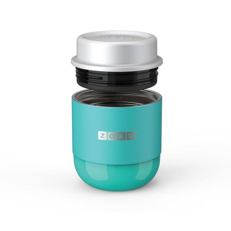 Contenedor de alimentos sólidos Zoku de 295ml en color turquesa, ideal para llevar comidas saludables al trabajo, escuela o viajes. Fabricado con plástico resistente y tapa de acero inoxidable, garantiza hermeticidad y durabilidad. Perfecto para conservar frutas, snacks o aperitivos sin derrames. Diseño moderno y fácil de limpiar.