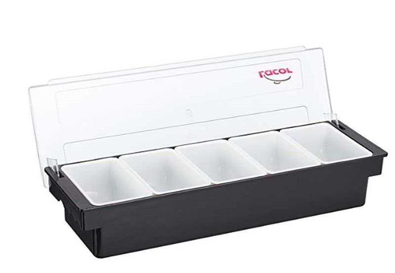 Contenedor para condimentos con 6 secciones, ideal para bares, cocinas o eventos. Fabricado en plástico resistente, cuenta con tapa transparente y diseño compacto para mantener los ingredientes organizados y frescos. Perfecto para servir salsas, especias o acompañamientos de forma práctica y elegante.