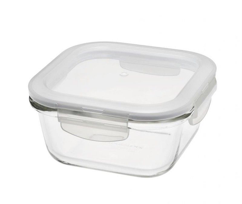 Contenedor de vidrio cuadrado de 500 ml, ideal para almacenar alimentos en la nevera o llevar comidas al trabajo. Apto para horno y microondas, con tapa hermética de plástico blanco que asegura el cierre. Diseño práctico con bisagras laterales y asa integrada para mayor comodidad. Perfecto para uso diario en cocina y comedor.
