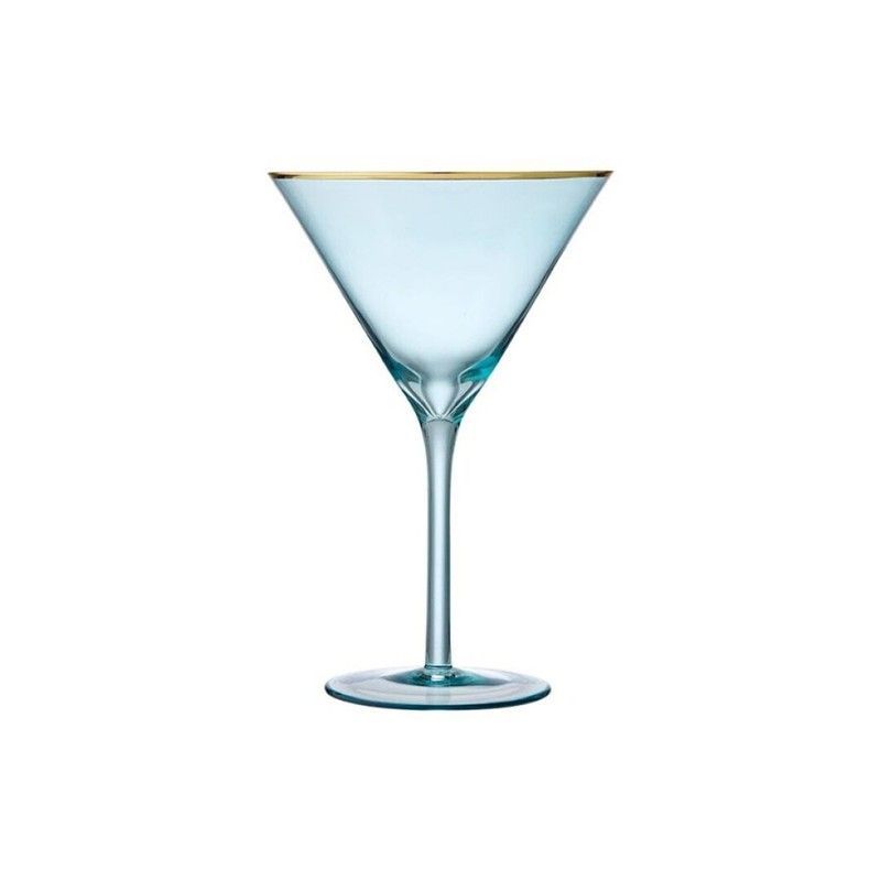 Copa de cocktail Chloe Aqua en cristal de tono azul claro con elegante borde dorado. Diseño sofisticado y moderno, ideal para servir cócteles y bebidas frías en cualquier ocasión. Su forma triangular y tallo largo aportan un toque de distinción a tu mesa. Perfecta para amantes de la elegancia en la cristalería de comedor.