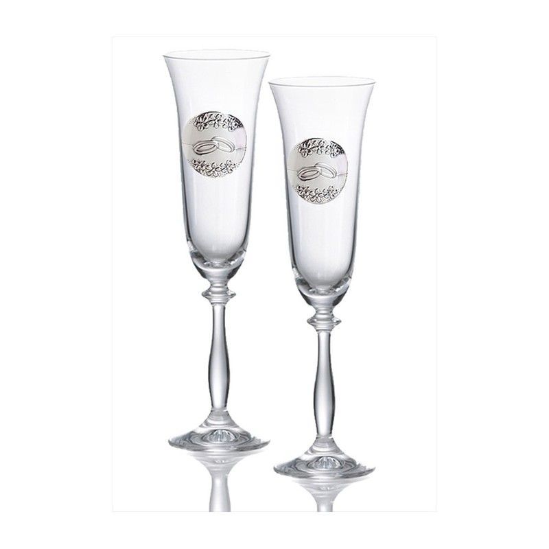 Copas conmemorativas GA4224A en cristal transparente con elegante diseño de alianzas en tono plateado. Perfectas para bodas, aniversarios o celebraciones especiales. Su forma clásica y acabado brillante las convierten en un regalo sofisticado y duradero. Incluyen detalles ornamentales que resaltan su carácter festivo y romántico.