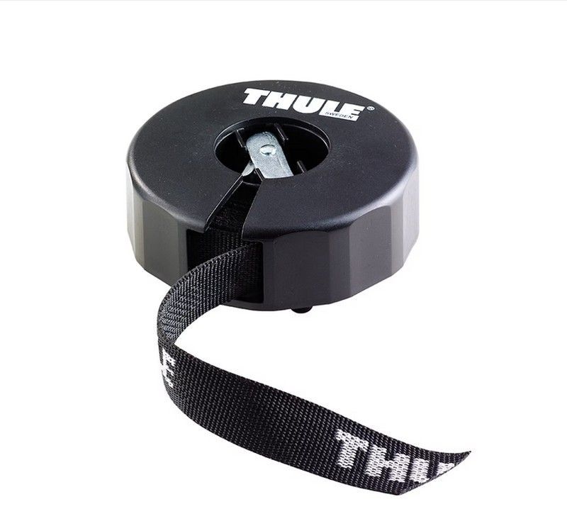 Correa de carga THULE de 400 cm en color negro, con organizador compacto para un almacenamiento ordenado y seguro. Fabricada en poliéster resistente y con mecanismo de enrollado en plástico, ideal para sujetar equipaje, bicicletas o carga en portaequipajes de vehículos. Diseño funcional y duradero para uso diario en viajes y transporte.