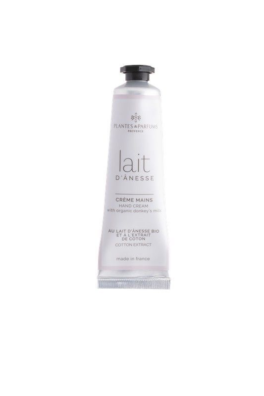 Crema para manos de 30 ml de Plantes & Parfums Provence con leche de burra orgánica y extracto de algodón. Fórmula suave y nutritiva para una piel hidratada y suave. Ideal para uso diario, especialmente en manos secas o sensibles. Fabricada en Francia con ingredientes naturales de alta calidad.