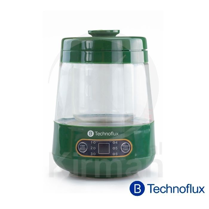 Cuba plástica Technoflux 031077 con calefacción, ideal para mantener bebidas calientes o preparar infusiones. Diseño moderno con base verde y cuerpo transparente, panel digital para controlar tiempo y temperatura. Perfecta para uso en casa o oficina.