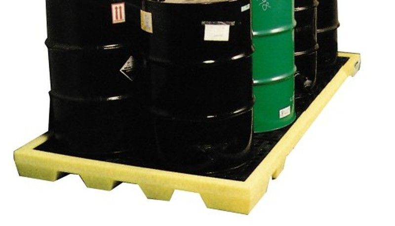 Cubeta de plástico amarillo para 8 bidones de 200 litros, ideal para almacenamiento seguro de productos químicos o aceites en industrias y talleres. Diseño robusto con bordes elevados para contener derrames y evitar fugas. Perfecta para cumplir con normativas de seguridad y protección ambiental. Fácil de limpiar y resistente al desgaste.