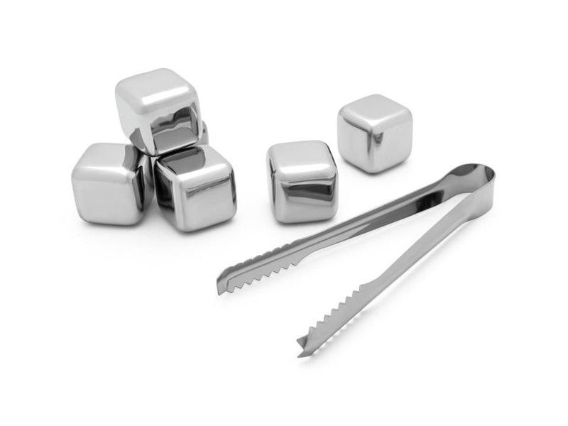Cubitos inoxidables de acero inoxidable con pinzas Leopold, ideales para enfriar bebidas sin diluir. Diseño elegante y duradero, perfectos para cocteles, whisky o cualquier bebida fría. Fáciles de limpiar y reutilizables, garantizan una experiencia de consumo premium en casa o en eventos.