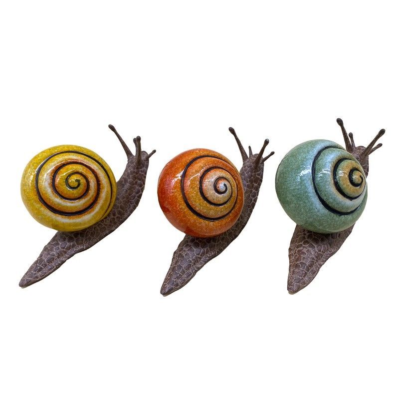 Adorna tu hogar o jardín con estas encantadoras figuritas de caracol en cerámica. Con conchas en tonos amarillo, naranja y verde, y cuerpos con textura realista, son perfectas como detalles decorativos en estanterías, mesas o macetas. Ideales para amantes de la naturaleza y la decoración rústica o bohemia.