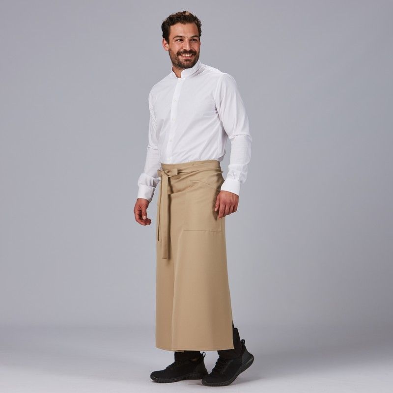 Delantal francés abierto de poliéster, ideal para cocineros, chefs o profesionales de la hostelería. Con cintura ajustable mediante lazo y corte recto hasta la rodilla, ofrece comodidad y estilo. Fabricado en tejido sarga resistente y fácil de limpiar. Perfecto para uso diario en cocina o restaurantes.