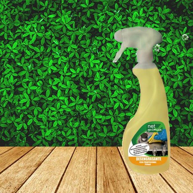 Desengrasante superconcentrado en spray de 750 ml, ideal para eliminar grasa y suciedad en cocinas, fregaderos y superficies metálicas. Fórmula eficaz y fácil de usar con aplicador de spray. Etiqueta con diseño de hoja verde y detalles en español. Perfecto para mantenimiento diario en hogar y cocina.