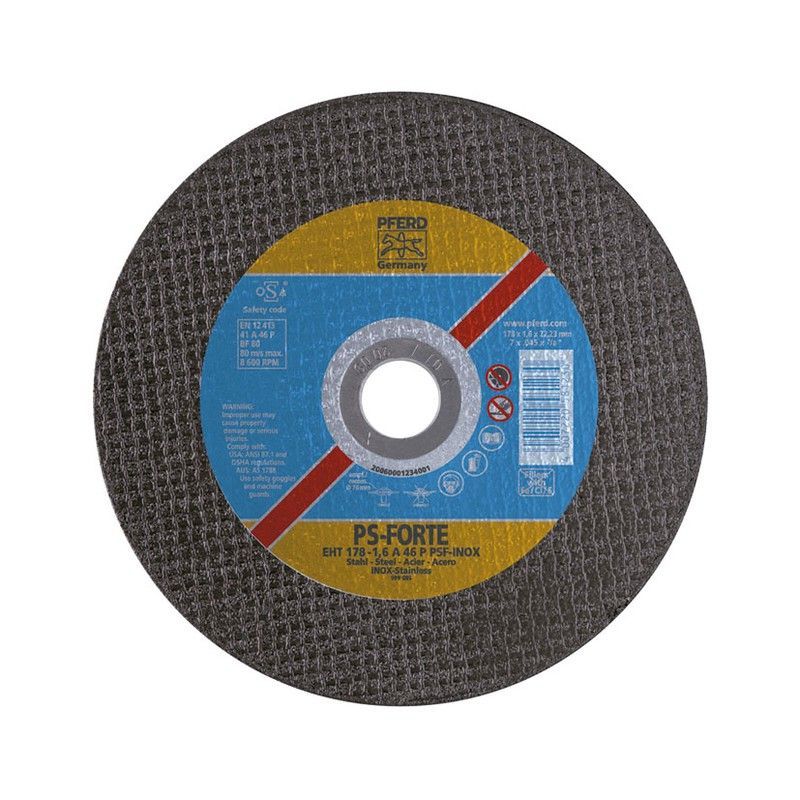Disco de corte PFERD EHT 115-1,0 A60 P Psf-Inox, ideal para cortar acero inoxidable y metales. Fabricado con óxido de aluminio de alta calidad para mayor durabilidad y precisión. Diseño robusto con etiqueta informativa y orificio central para montaje seguro. Perfecto para trabajos profesionales en talleres y aplicaciones de corte industrial.