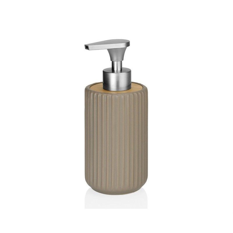 Dispensador de jabón de cerámica marrón con bambú, 7,5x7,5x17,5cm