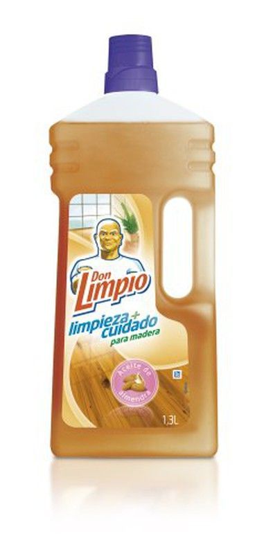 Don Limpio 1300 Madera, limpiador y cuidado para superficies de madera. Fórmula con aceite de almendras que limpia, nutre y protege, dejando un acabado brillante y suave. Ideal para muebles, suelos y puertas de madera. Botella de 1,3L para uso en hogar y oficina. Fácil de usar y eficaz.