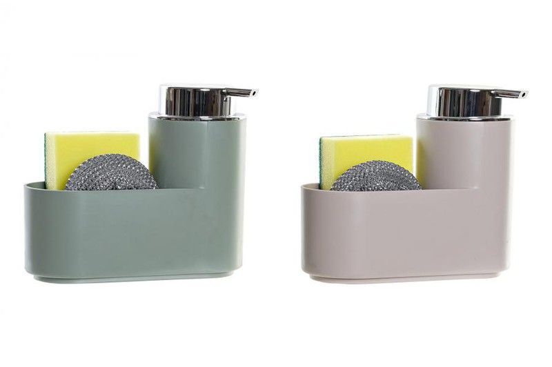 Dosificador de cocina Summer con diseño moderno y funcional. Ideal para mantener tu encimera organizada. Fabricado en plástico de alta calidad con bomba de acero inoxidable. Incluye compartimento para esponja y estropajo. Perfecto para uso diario en la cocina. Disponible en tonos verde y gris mate.