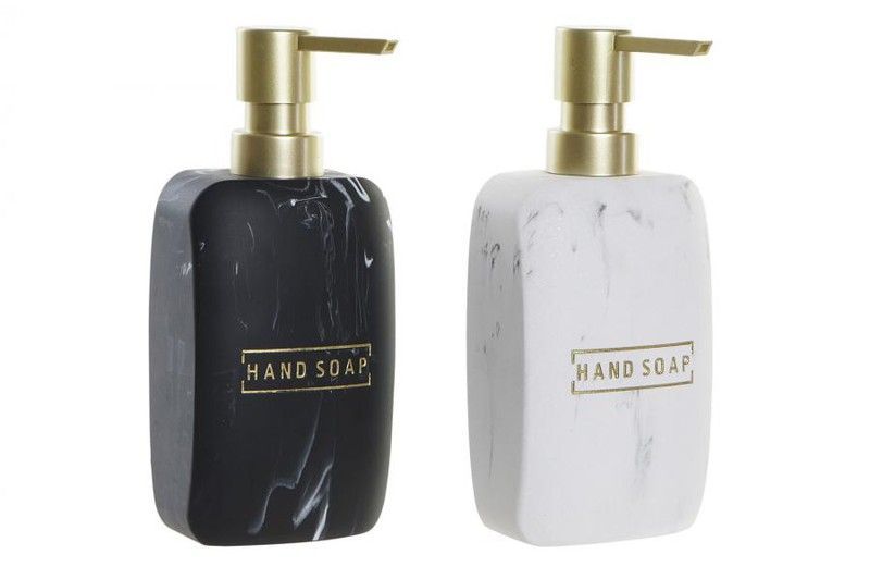 Dosificador de resina con acabado imitación mármol en negro o blanco, con pompa dorada y diseño glam. Ideal para baños modernos y elegantes. Fácil de usar y decorativo, combina estilo y funcionalidad. Perfecto para dispensar jabón líquido con un toque sofisticado.