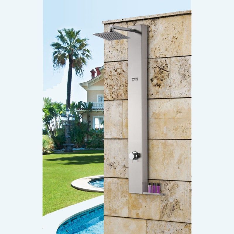Ducha de jardín Urban Oasis en acero inoxidable, ideal para espacios exteriores con estilo. Diseño moderno y minimalista, perfecta para piscinas o terrazas. Ofrece una experiencia de ducha al aire libre con control de temperatura y flujo. Resistente a la intemperie y fácil de instalar. Ideal para disfrutar de momentos relajantes en tu hogar.