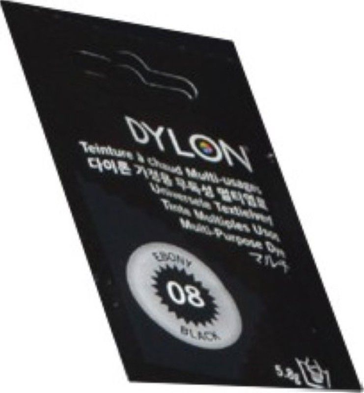 Tinte Dylon 08 Ebony Black para tejidos, ideal para renovar o cambiar el color de prendas de ropa. Fácil de usar en casa, con fórmula multiusos para diferentes tipos de tejidos. Paquete de 50g, perfecto para pequeñas cantidades o proyectos creativos. Color negro intenso y duradero.