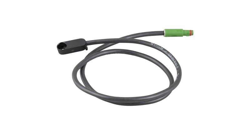 Sensor de velocidad para e-bike Trek Domane+ LT, compatible con sistemas de bicicletas eléctricas. Cable negro con conectores de plástico, uno negro y otro verde con anillo naranja. Ideal para ciclistas que buscan precisión en la medición de velocidad. Fácil instalación y conexión directa al sistema de la bicicleta.