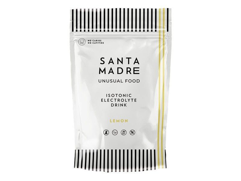 Electrolito isotónico Santa Madre en polvo de 18 gramos, sabor limón, ideal para rehidratación rápida durante el ejercicio o en días calurosos. Sin azúcares añadidos, libre de caries y con fórmula equilibrada para mantener los electrolitos. Envase práctico y elegante con diseño minimalista en blanco, negro y dorado. Perfecto para deportistas, viaje