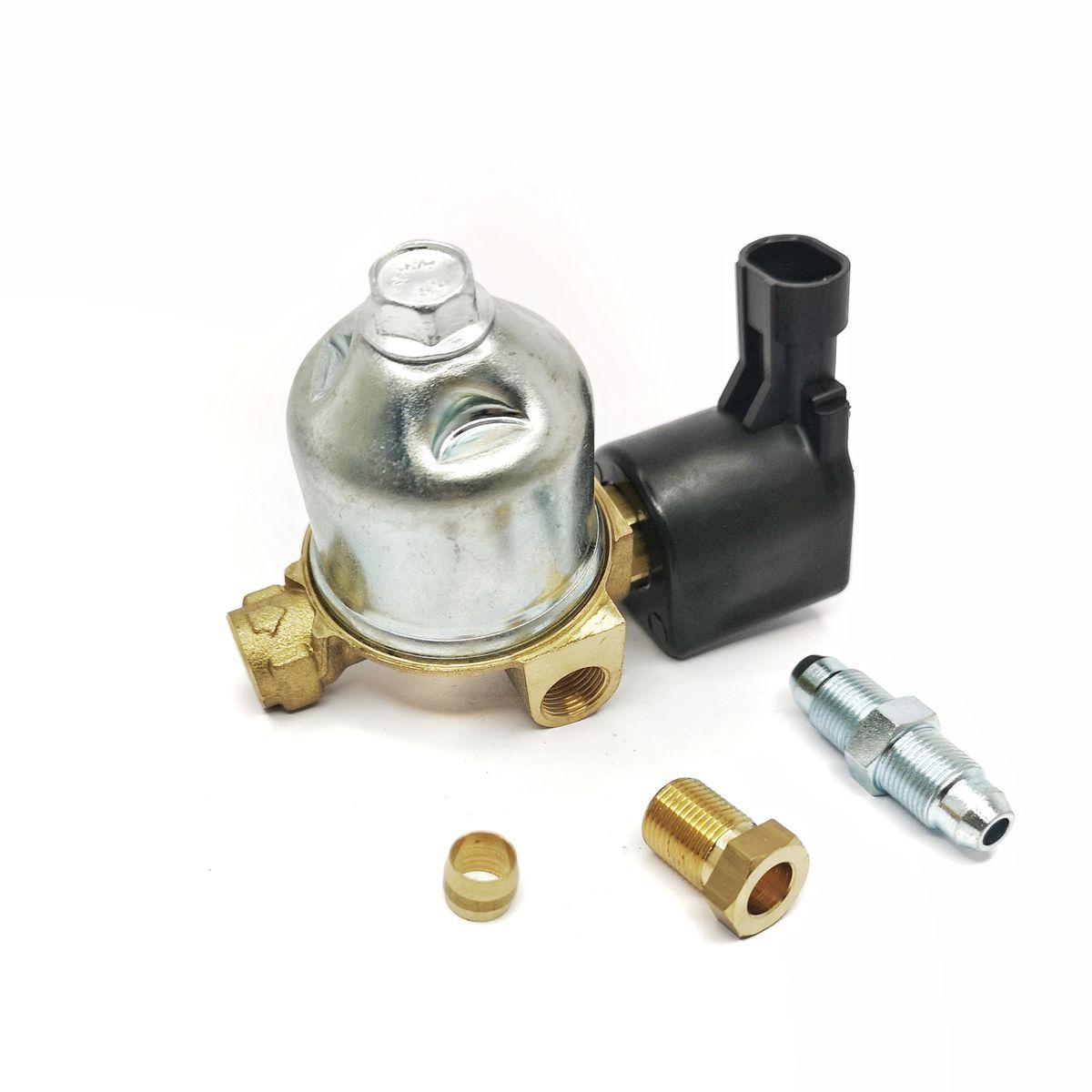 Electrovalvula GLP E08G 8mm de Tartarini, ideal para sistemas de gas licuado en vehículos. Fabricada en metal resistente con conexiones de bronce y cuerpo de plástico negro. Incluye accesorios para una instalación segura y eficiente. Perfecta para vehículos que utilizan GLP, garantizando un cierre hermético y durabilidad.