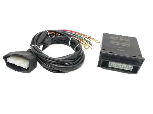 Emulador de señal de inyección ISE-D4 de STAG, ideal para vehículos con sistemas de inyección electrónica. Fabricado en plástico y metal, cuenta con cable negro con hilos de colores y conectores de 16 pines para una conexión precisa. Permite el control y simulación de señales de inyección en sistemas de diagnóstico y ajuste de motores. Solución pro