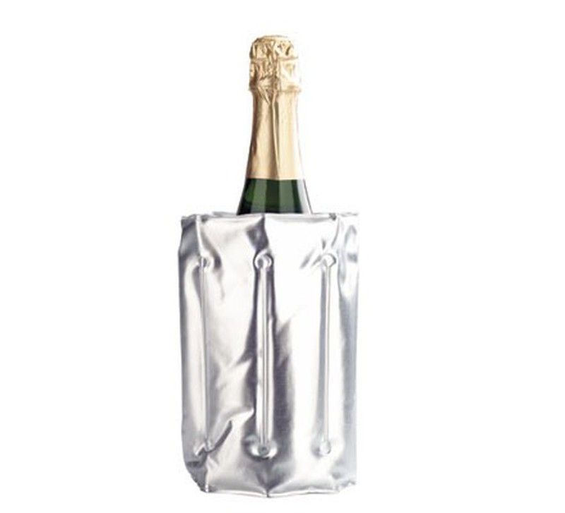 Enfriador de botellas de diseño elegante en color plateado, ideal para mantener tus bebidas frías durante fiestas, eventos o cenas. Fabricado en plástico resistente, cuenta con asas laterales para un transporte cómodo. Perfecto para champán, vino o cualquier botella estándar. Un accesorio funcional y sofisticado para tu bar o mesa de comedor.