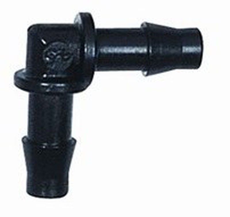 Conector en codo para microtubos de 4 mm, ideal para sistemas de riego por goteo en jardín y huertos. Fabricado en plástico resistente, permite cambiar la dirección del flujo de agua con facilidad. Fácil instalación y conexión segura gracias a sus anillos de sujeción. Perfecto para riego eficiente y económico en plantas, macetas y cultivos.
