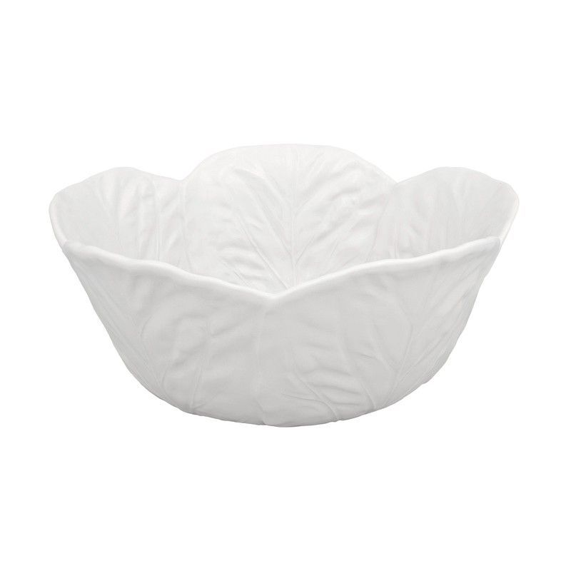 Ensaladera alta de loza en blanco, con diseño inspirado en una hoja de repollo. Ideal para servir ensaladas, frutas o guarniciones con estilo. Su forma ondulada y textura natural aportan un toque decorativo a tu mesa. Resistente y fácil de limpiar, perfecta para uso diario o ocasiones especiales.