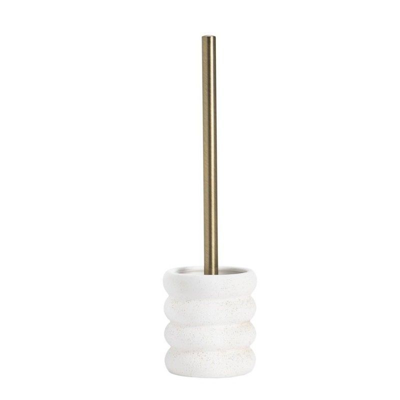 Escobilla de baño de dolomita en blanco con varilla metálica dorada, ideal para baños modernos y elegantes. Su base texturizada y diseño minimalista aportan un toque sofisticado. Fabricada en dolomita de alta calidad, resistente y duradera. Perfecta para mantener tu baño limpio con estilo.
