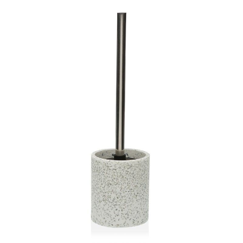 Escobillero Baño Efecto Terrazo White Versa: diseño elegante y moderno con acabado en tonos blancos y grises que imita el terrazo. Fabricado con cerámica de alta calidad y varilla de acero inoxidable resistente a la corrosión. Ideal para baños con estilo minimalista, fácil de limpiar y duradero. Aporta un toque sofisticado a tu espacio de higiene.