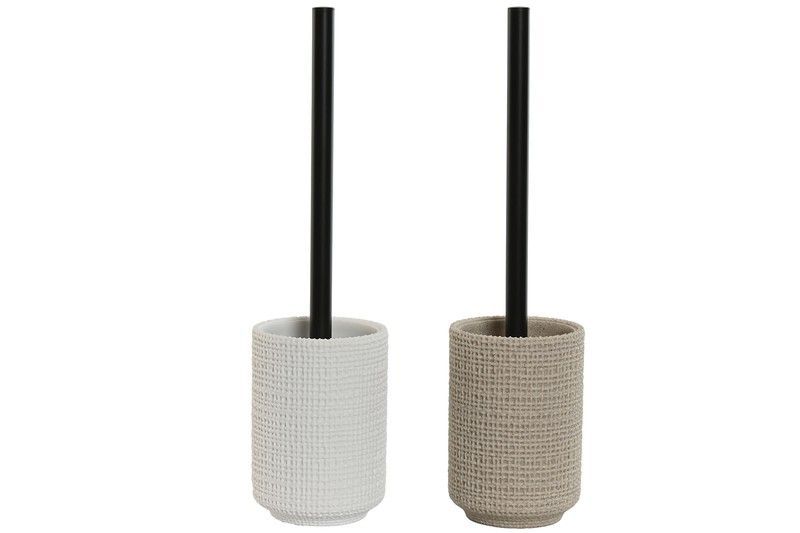 Escobillero de baño en resina y metal con diseño moderno y textura cuadriculada. Disponible en blanco y beige, con soporte negro. Ideal para mantener tu baño ordenado y con estilo. Fácil de limpiar y resistente al agua. Perfecto para decorar tu lavabo con un toque elegante y funcional.