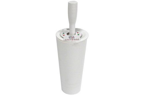 Escobillero de baño cerrado en color blanco, ideal para mantener tu baño limpio y ordenado. Diseño compacto y funcional con tapa que evita olores y polvo. Incluye sistema de cierre con indicadores visuales para un uso cómodo y higiénico. Perfecto para cualquier hogar que busque practicidad y estilo.